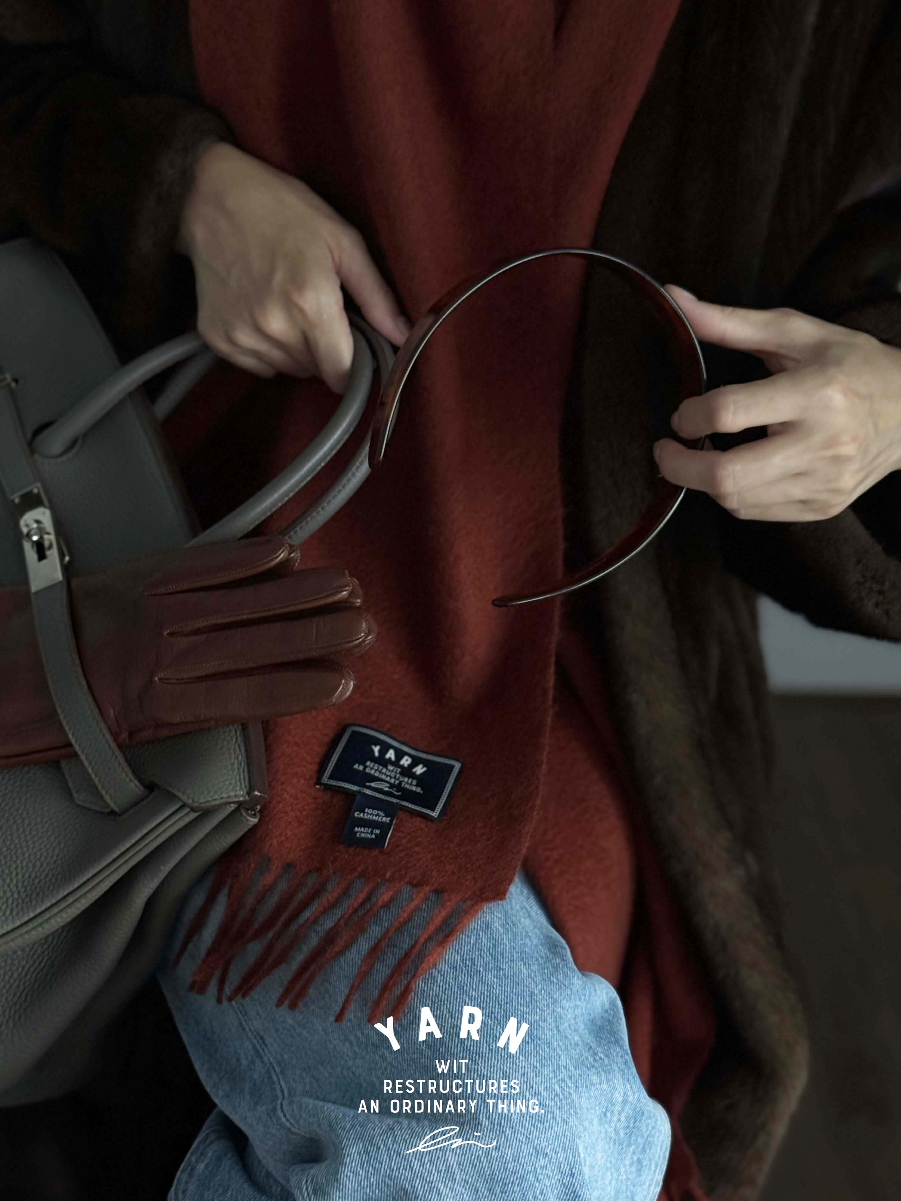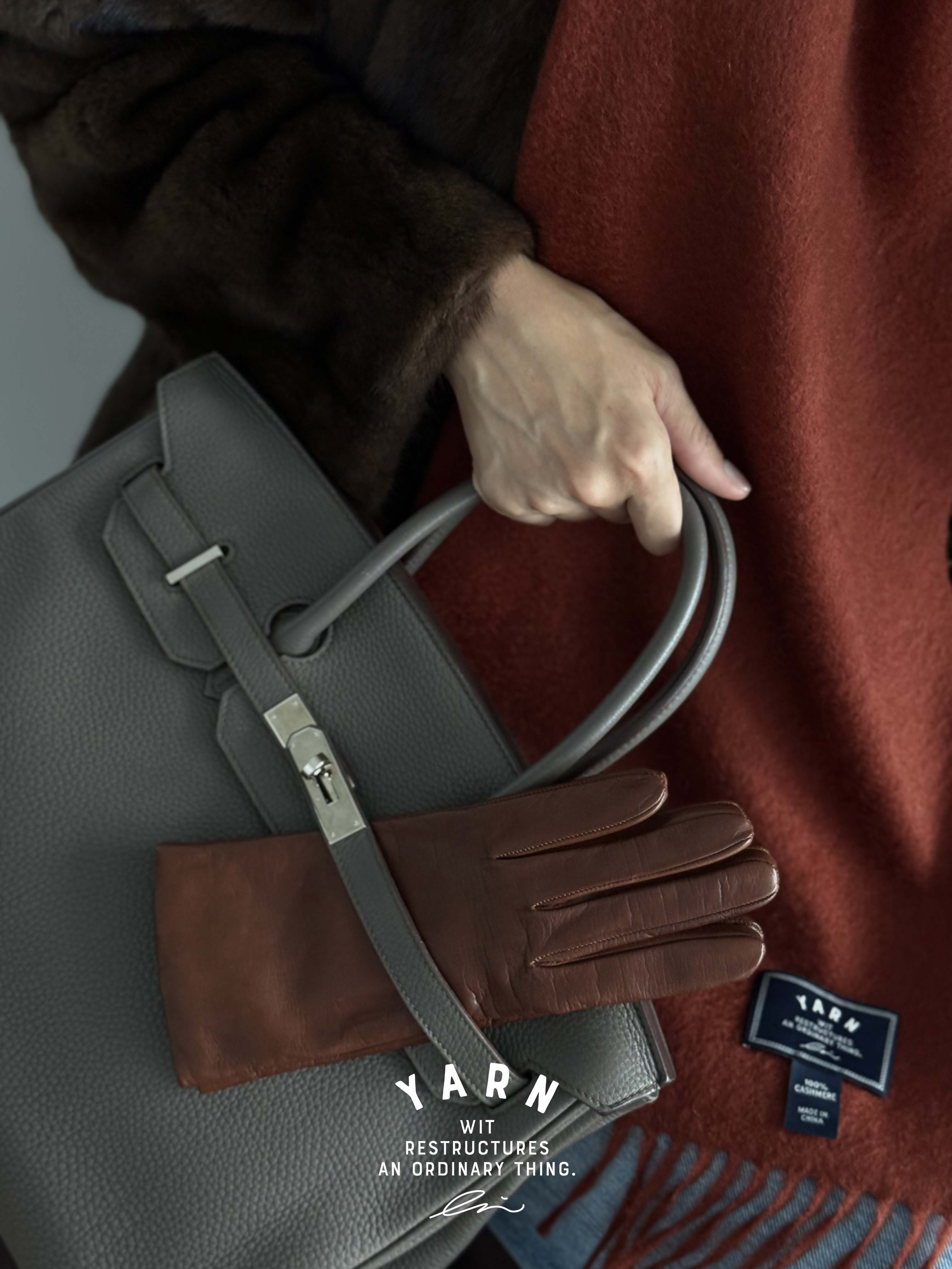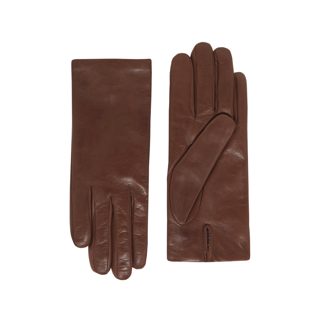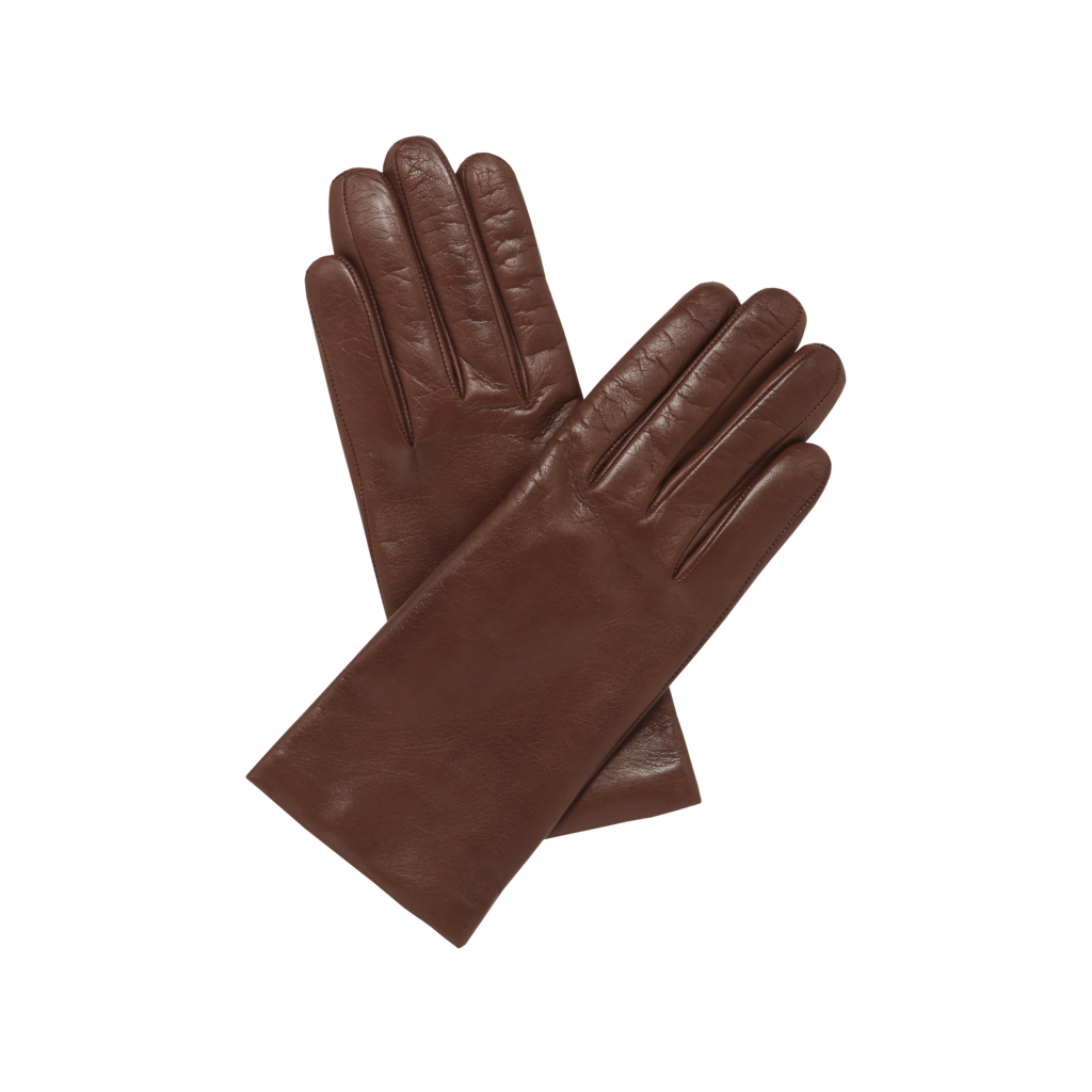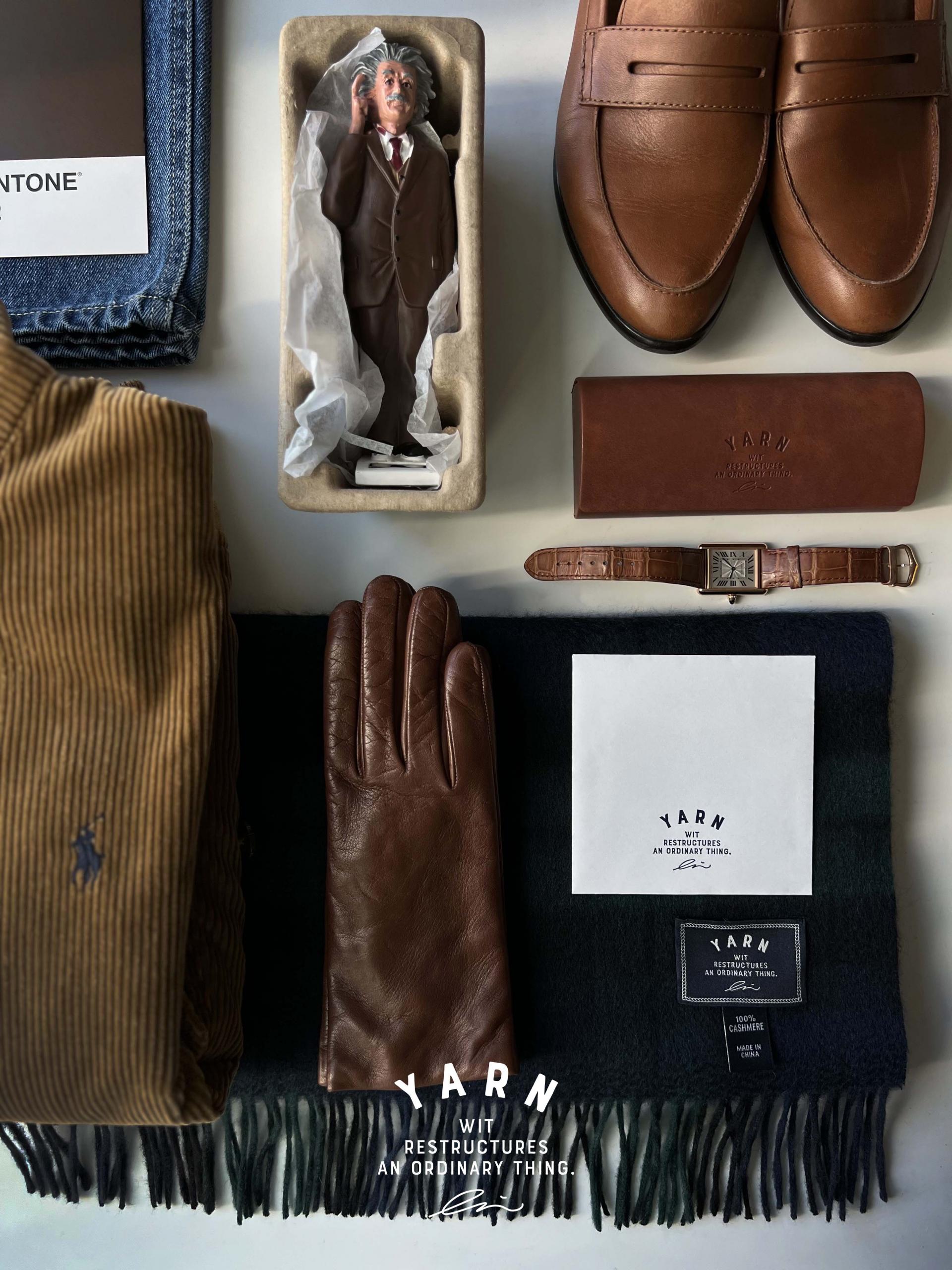 짙은 브라운의 장갑 한 쌍이 묵직한 균형감을 선사합니다.