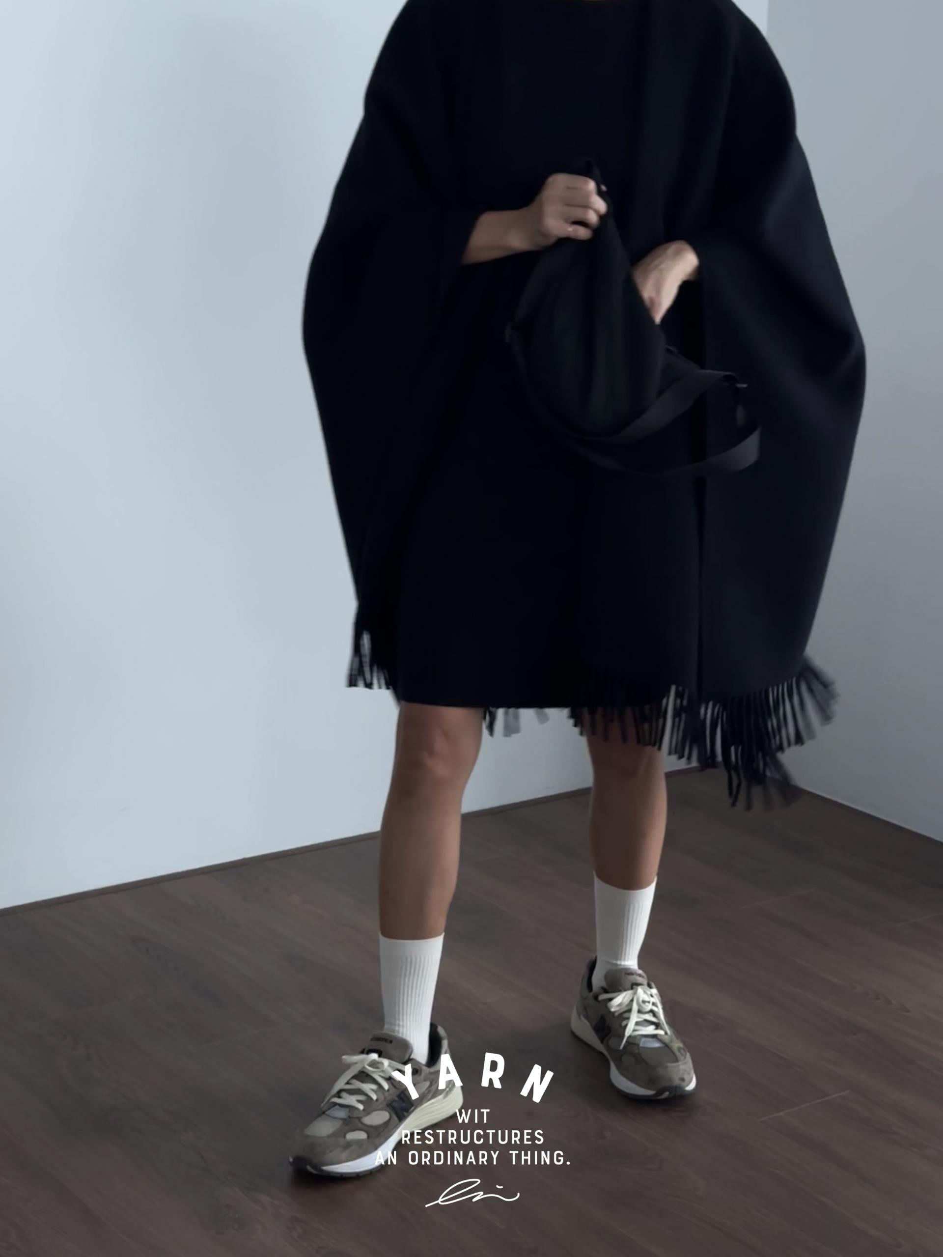 단독 아우터로 착용하거나 코트 위에 착용하여 한겨울 강추위에도 끄떡없는 투웨이 케이프.