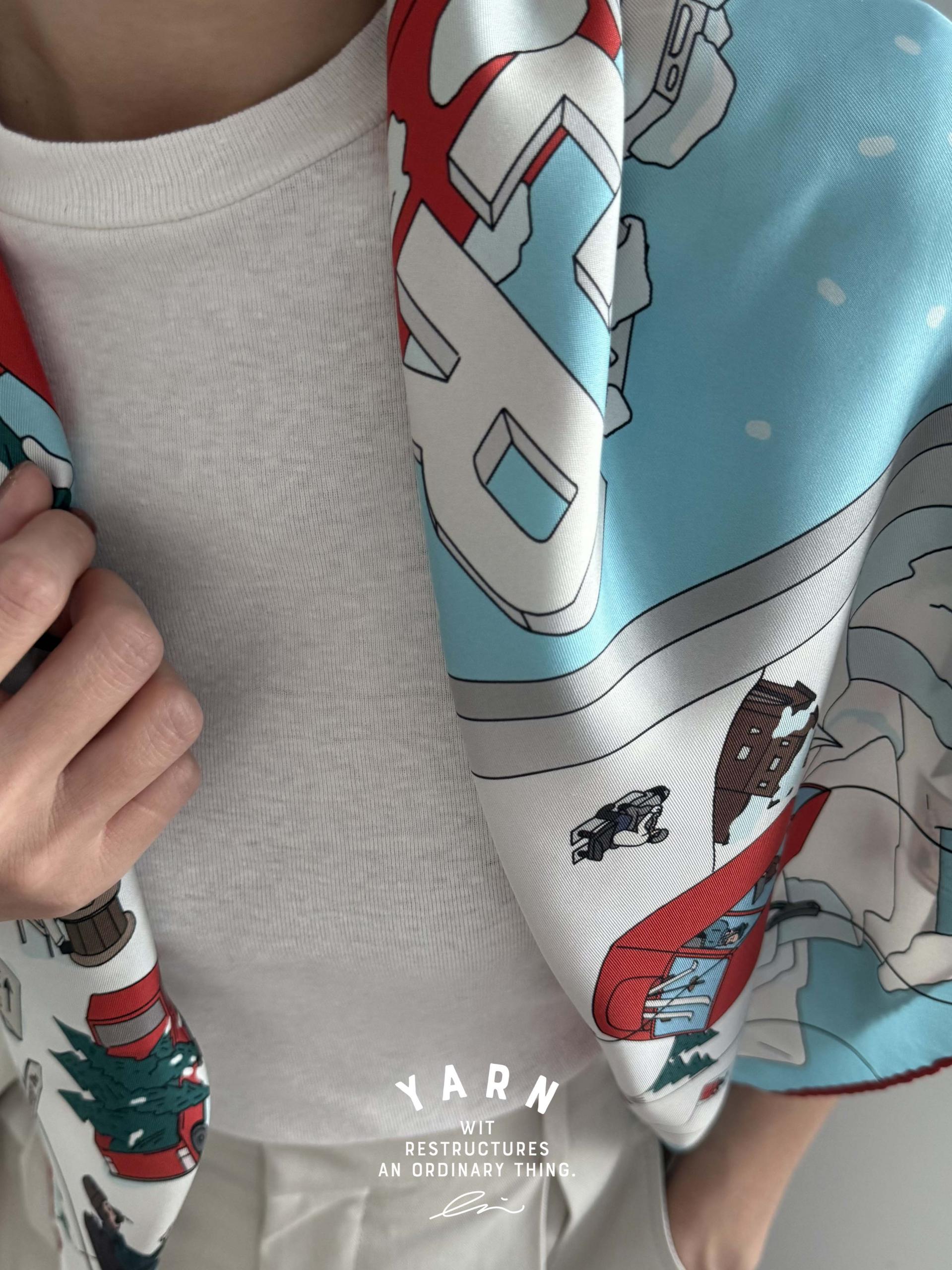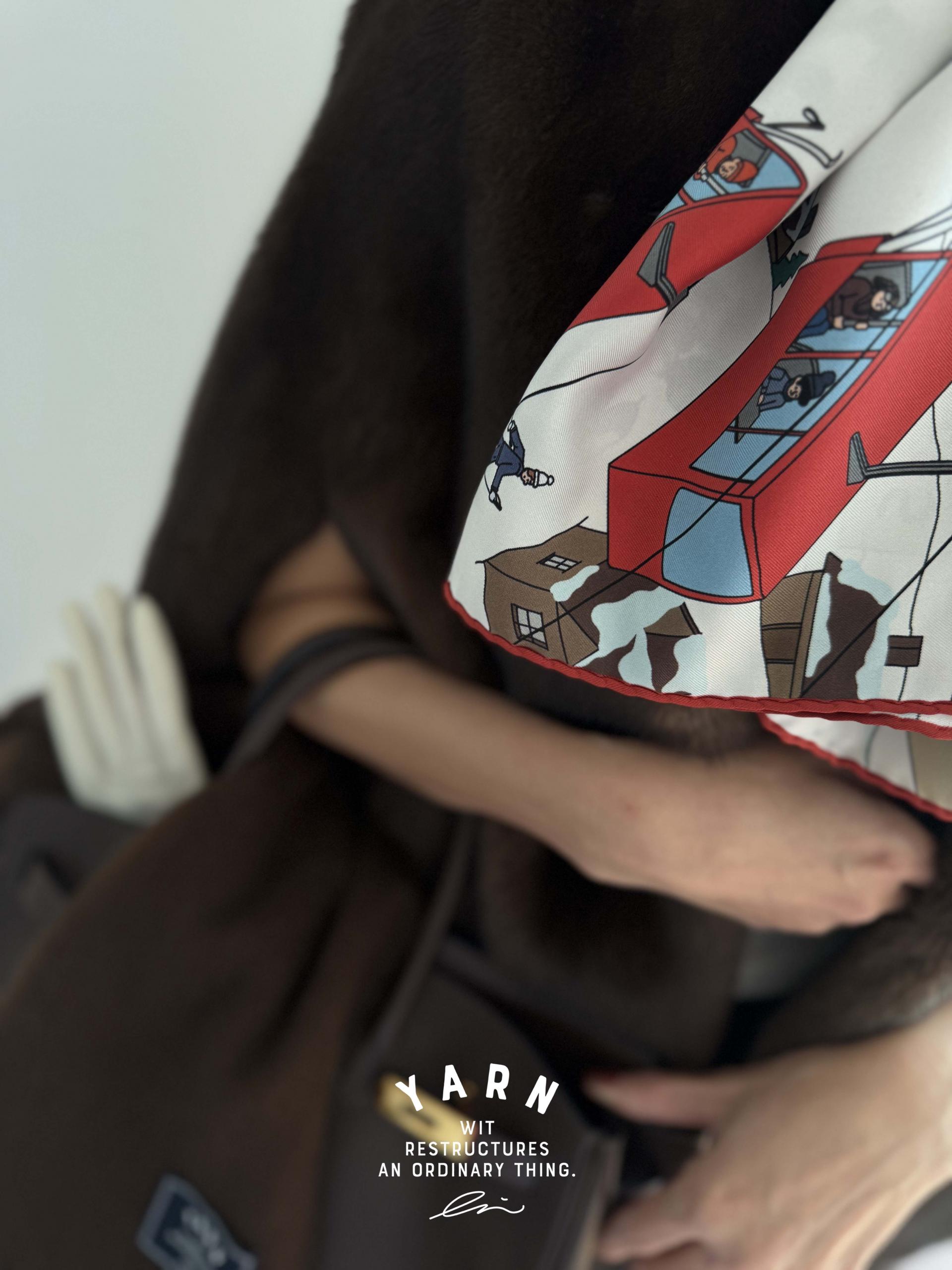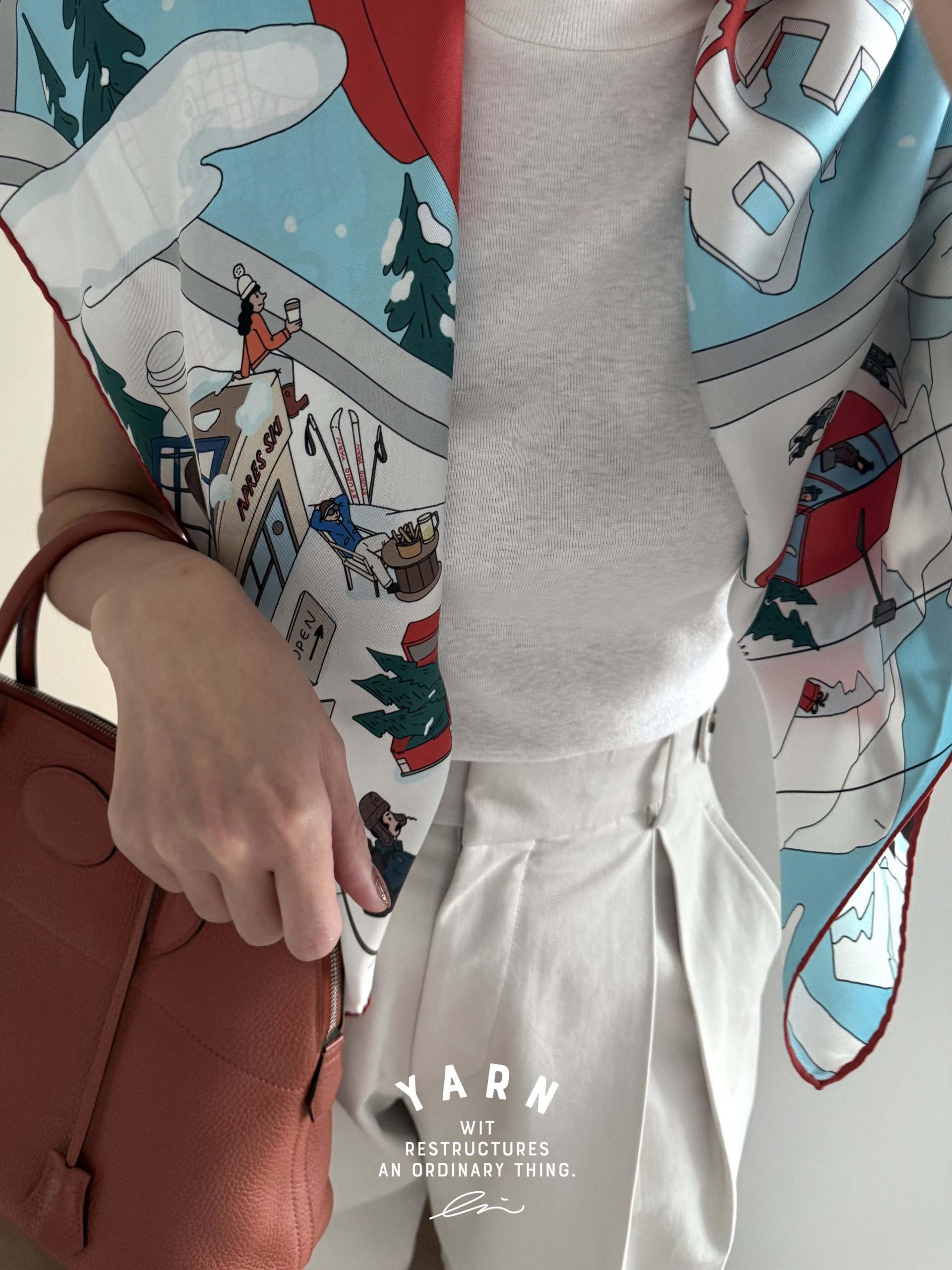 Studio yarn의 스퀘어 스카프에서 느껴지는 극강의 부드러움과