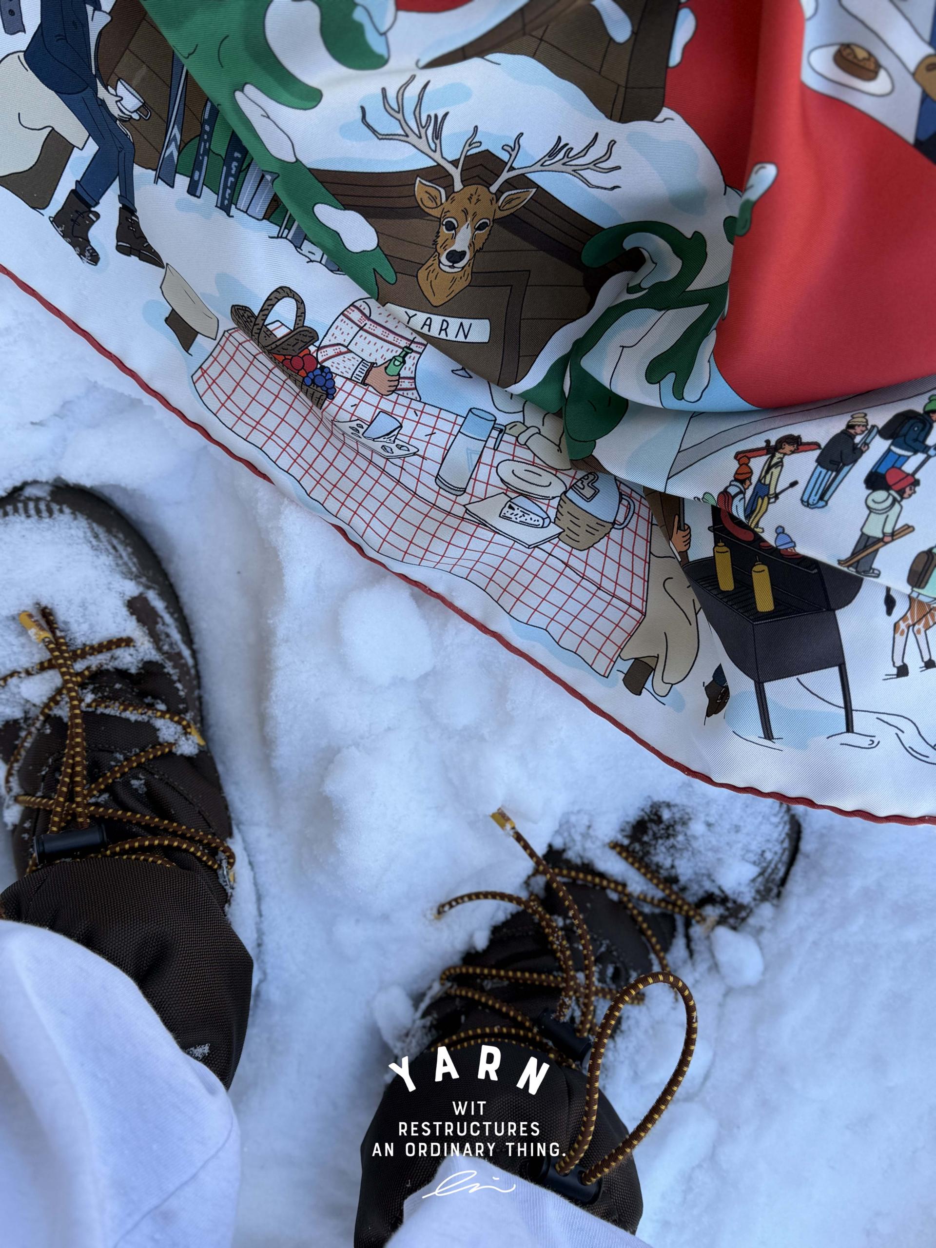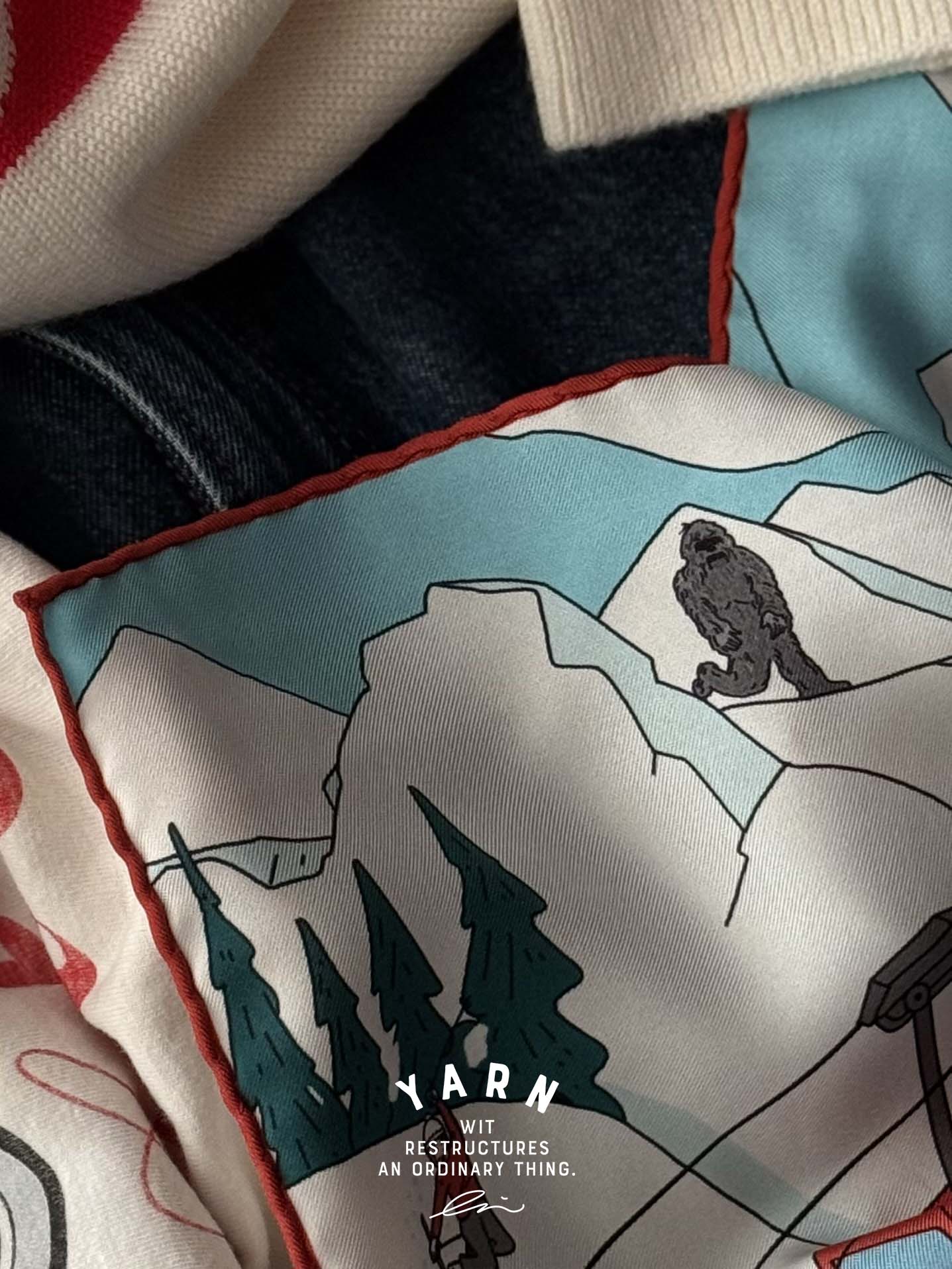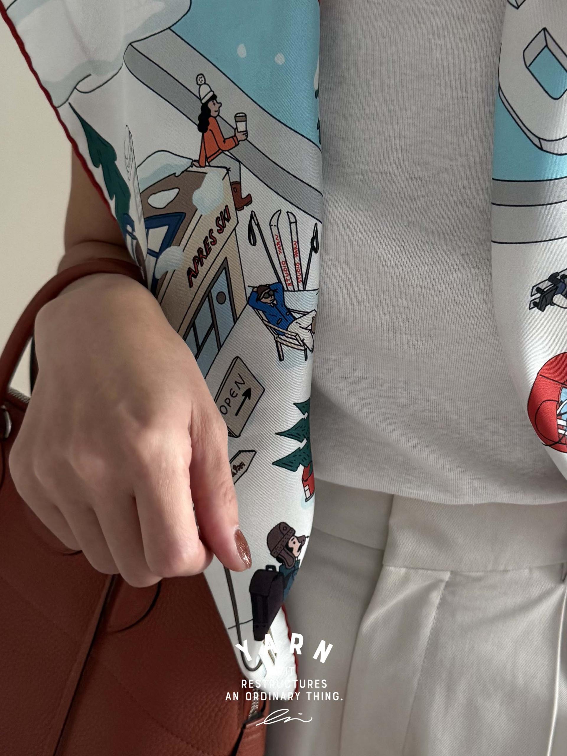 Studio yarn의 스퀘어 스카프에서 느껴지는 극강의 부드러움과